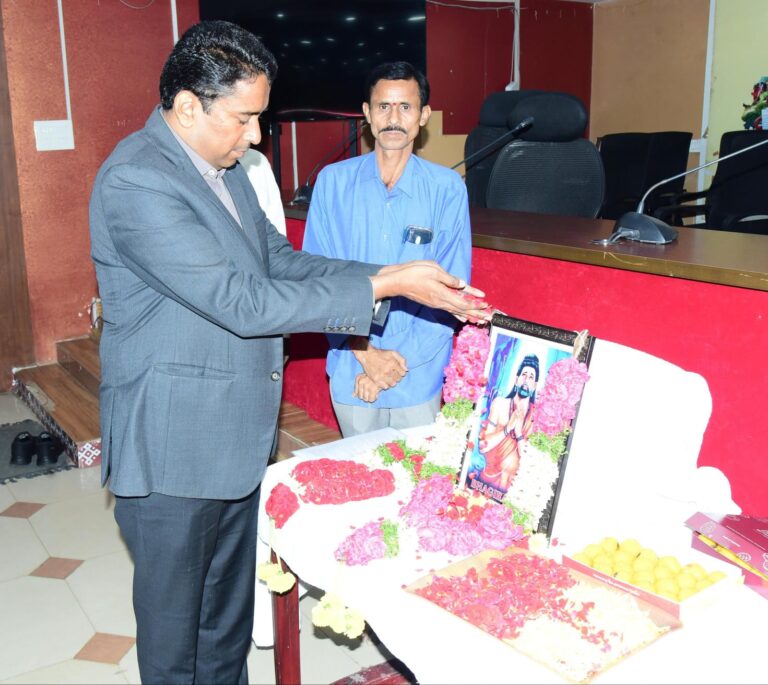 ఇంద్రకీలాద్రి, ఆంధ్రప్రభ : గంగను భూమ్మీదకు తెచ్చిన మహనీయులు మహర్షి భగీరథను స్మరించుకుంటూ సామాజిక బాధ్యతగా ప్రతిఒక్కరూ జల సంరక్షణలో కీలక భాగస్వాములు కావాలని జిల్లా కలెక్టర్ డా. జి.లక్ష్మీశ అన్నారు. మహర్షి భగీరథ జయంతి సందర్భంగా జిల్లా బీసీ సంక్షేమ శాఖ ఆధ్వర్యంలో కలెక్టరేట్ శ్రీ పింగళి వెంకయ్య సమావేశ మందిరంలో గురువారం జరిగిన ప్రత్యేక కార్యక్రమంలో కలెక్టర్ లక్ష్మీశ అధికారులతో కలిసి భగీరథుని చిత్రపటానికి పూల మాలలు వేసి మహనీయుని స్ఫూర్తి పథాన్ని స్మరించుకున్నారు.