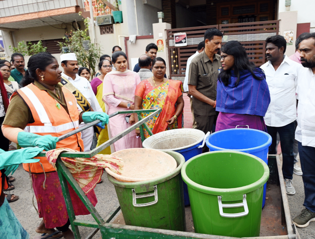 జీరో గ్యాప్ శానిటేషన్ కార్యక్రమం గురించి ప్రజలకు వివరించి కరపత్రాలను పంపిణీ చేశారు. వారి ప్రాంతంలో పారిశుద్ధ్య పరిస్థితులు ఎలా ఉన్నాయి, నగరపాలక పారిశుద్ధ్య సిబ్బంది ప్రతీ రోజు శుభ్రం చేస్తున్నారా, లేదా, ప్రతీ రోజూ ఇంటింటికి వచ్చి తడి, పొడి చెత్తలనుసేకరిస్తున్నారా లేదా అని అడిగి తెలుసుకున్నారు. ఈ సందర్భంగా కలెక్టర్ వెట్రిసెల్వి మాట్లాడుతూ, వ్యక్తిగత, పరిసరాల పరిశుభ్రత ప్రతీ ఒక్కరి జీవితంలో భాగం కావాలన్నారు.