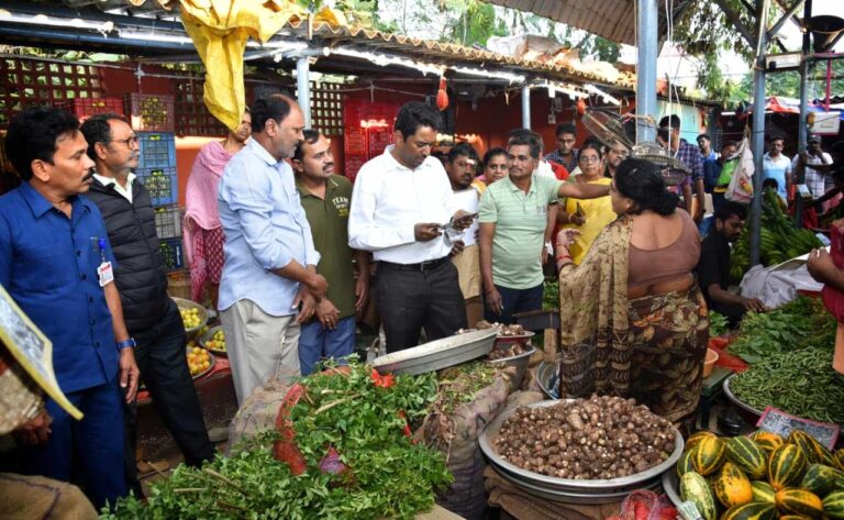 Collector | ఆంధ్రప్రభ, పటమట : రైతుబజారుల నిర్వహణలో పారదర్శకతను పాటిస్తూ ఎలాంటి అవకతవకలకు తావులేకుండా వినియోగదారులకు సేవలందించాలని, రైతు బజార్లలో ప్లాస్టిక్ సంచుల వాడకాన్ని పూర్తిగా నిషేధించేలా చర్యలు తీసుకోవాలని జూట్ క్లాత్ సంచుల అమ్మకాలకు ప్రత్యేక స్టాల్స్ ఏర్పాటు చేయాలని ఎన్టీఆర్ జిల్లా కలెక్టర్ డా. జి. లక్ష్మీశ సంబంధిత అధికారులను ఆదేశించారు. రైతు బజార్ల నిర్వహణ పరిశీలనలో భాగంగా గురువారం పటమట హైస్కూల్ రోడ్డులోని రైతు బజార్ను కలెక్టర్ ఆకస్మికంగా తనిఖీ చేశారు.