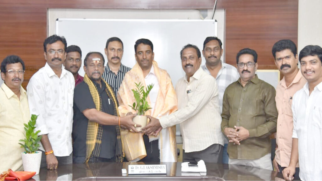 Integral development | విజయవాడ, ఆంధ్రప్రభ : సమష్టి కృషితోనే సమగ్రాభివృద్ధి సాధ్యమవుతుందని జిల్లా అభివృద్ధిలో ఉద్యోగులు అందిస్తున్న సహకారం మరువలేనిదని ప్రజలకు పారదర్శకమైన సేవలందించి ప్రభుత్వ లక్ష్యాలను సాధించడంలో భాగస్వాములు కావాలని జిల్లా కలెక్టర్ డా. జి.లక్ష్మీశ అన్నారు. ఎన్టీఆర్ జిల్లా కలెక్టర్గా పదవీ బాధ్యతలు చేపట్టి ఏడాది పూర్తిచేసుకున్న సందర్భంగా ఏపీ ఎన్జీజీవో అసోసియేషన్ జిల్లా అధ్యక్షుడు డి.సత్యనారాయణ రెడ్డి, సహాధ్యక్షుడు వేమూరి ప్రసాద్, కార్యదర్శి డి.రమేష్ (D. Ramesh) నగర అధ్యక్షులు సీవీఆర్ ప్రసాద్ ఆధ్వర్యంలో జిల్లా, నగర కార్యవర్గ సభ్యులు మంగళవారం జిల్లా కలెక్టర్ విడిది కార్యాలయంలో జిల్లా కలెక్టర్ డా. జి.లక్ష్మీశను మర్యాదపూర్వకంగా కలిసి అభినందనలు తెలియజేశారు.