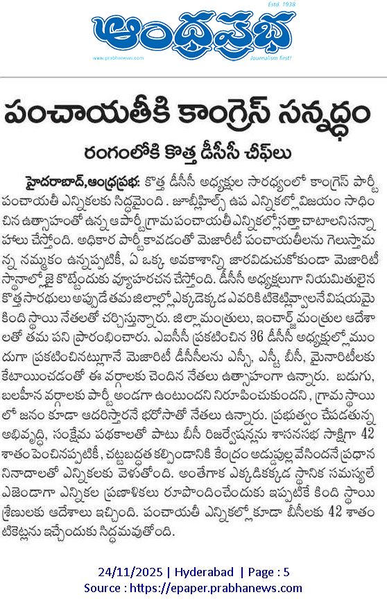 ఏఐసీసీ (AICC) ప్రకటించిన 36 డీసీసీ అధ్యక్షుల్లో ముందుగా ప్రకటించినట్లుగానే మెజారిటీ డీసీసీలను ఎస్సీ, ఎస్టీ, బీసీ, మైనారిటీలకు కేటాయించడంతో ఈ వర్గాలకు చెందిన నేతలు ఉత్సాహంగా ఉన్నారు. బడుగు, బలహీన వర్గాలకు పార్టీ అండగా ఉంటుందని నిరూపించుకుందని, గ్రామస్థాయిలో జనం కూడా ఆదరిస్తారనే భరోసాతో నేతలు ఉన్నారు. ప్రభుత్వం చేపడుతున్న అభివృద్ధి, సంక్షేమ పథకాలతో పాటు బీసీ రిజర్వేషన్లను శాసనసభ సాక్షిగా 42 శాతం పెంచినప్పటికీ, చట్టబద్ధత కల్పిండానికి కేంద్రం అడ్డుపుల్ల వేసిందనే ప్రధాన నినాదాలతో ఎన్నికలకు వెళుతోంది. అంతేగాక ఎక్కడికక్కడ స్థానిక సమస్యలే ఎజెండాగా ఎన్నికల ప్రణాళికలు రూపొందించేందుకు ఇప్పటికే కింది స్థాయి శ్రేణులకు ఆదేశాలు ఇచ్చింది. పంచాయతీ ఎన్నికల్లో కూడా బీసీలకు 42 శాతం టికెట్లను ఇచ్చేందుకు సిద్ధమవుతోంది.