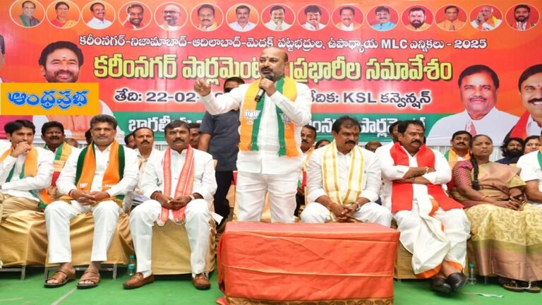 కరీంనగర్, ఫిబ్రవరి 22 (ఆంధ్రప్రభ): కాంగ్రెస్ అంటేనే నమ్మక ద్రోహానికి నిదర్శనమని, కాంగ్రెస్ నయవంచనకు బీజేపీ ధర్మరక్షణకు మధ్య జరుగుతున్న ఎమ్మెల్సీ ఎన్నికల్లో పట్టభద్రులు, టీచర్లు ఆలోచనతో నిర్ణయం తీసుకోవాలని కేంద్ర హోంశాఖ సహాయ మంత్రి బండి సంజయ్ కుమార్ కోరారు. శనివారం కరీంనగర్ జిల్లా కేంద్రంలో జరిగిన పార్లమెంట్ నియోజకవర్గ పచ్చీస్ ప్రభారీల సమావేశానికి కేంద్ర మంత్రి బండి సంజయ్ కుమార్ హాజరయ్యారు. ఈసందర్భంగా మాట్లాడుతూ… ఆరు గ్యారంటీలతో కాంగ్రెస్ ప్రభుత్వం చేసిన నయవంచన, నమ్మక ద్రోహానికి తగిన గుణపాఠం చెప్పాలని గ్రాడ్యుయేట్, టీచర్లకు పిలుపునిచ్చారు.