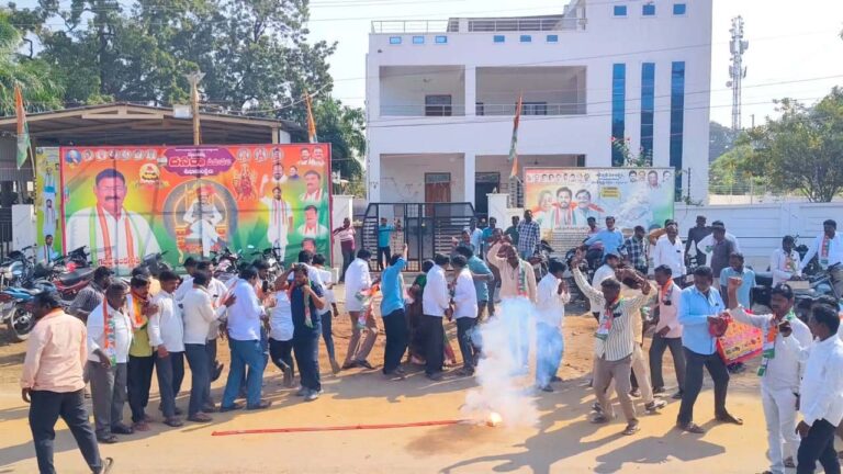 Mancherial | చెన్నూర్ ఆంధ్రప్రభ : జూబ్లీహిల్స్ ఉప ఎన్నికల్లో (Jubilee Hills by-election) కాంగ్రెస్ అభ్యర్థి విజయం సాధించడంతో హర్షిస్తూ చెన్నూరు క్యాంప్ కార్యాలయం ముందు స్థానిక కాంగ్రెస్ నాయకులు, కార్యకర్తలు టపాసులు పేల్చి సంబరాలు జరుపుకున్నారు. రాష్ట్ర కార్మిక ఉపాధి మంత్రి వివేక్ వెంకట స్వామి (Vivek Venkataswamy) ఇలాఖా కేంద్రమైన చెన్నూరులో ఈ ఉత్సాహం నిండిన వాతావరణం నెలకొంది.