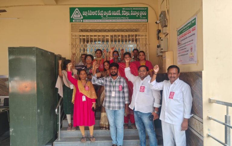 486 సహకార కేంద్ర బ్యాంక్ ఉద్యోగుల నిరసన, నినాదాలు…