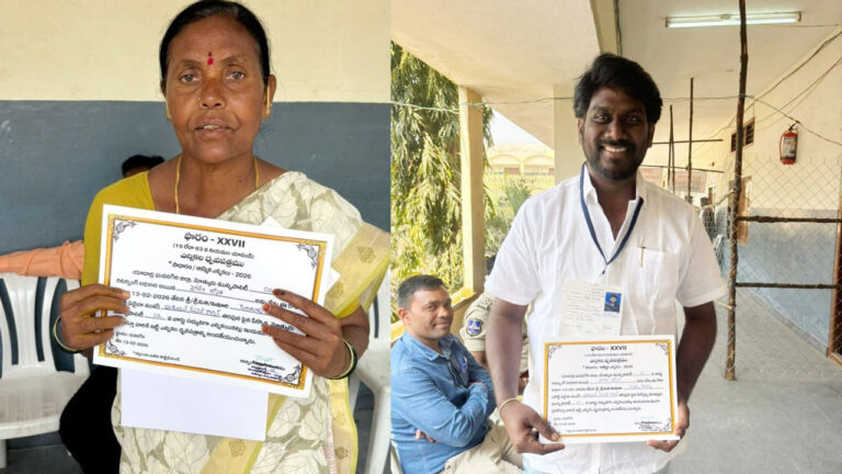 కౌన్సిలర్ విజేతలకు ధ్రువీకరణ పత్రాల అందజేత Sowjanya Anneboina February 13, 2026 మోత్కూర్, ఆంధ్రప్రభ : మోత్కూర్ మున్సిపాలిటీ లో గెలుపొందిన 1 వ వార్డ్ కాంగ్రెస్ అభ్యర్ధి పల్లెర్ల వెంకన్న,2 వ వార్డ్ కాంగ్రెస్ అభ్యర్ధి కూర్మిళ్ల ప్రమీల రాములు లకు ఎన్నికల అధికారులు గెలుపొందిన ధ్రువీకరణ పత్రాలను అందజేశారు.