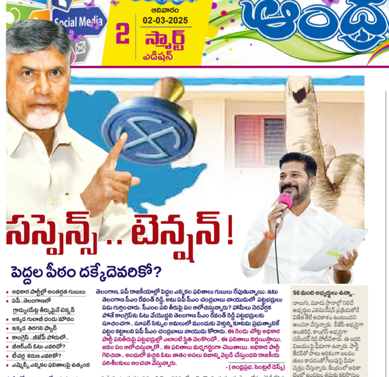 ఆంధ్రప్రభ, సెంట్రల్ డెస్క్ తెలంగాణ, ఏపీ రాజకీయాల్లో పెద్దల ఎన్నికల ఫలితాలు గుబులు రేపుతున్నాయి. ఇటు తెలంగాణ సీఎం రేవంత్ రెడ్డి, అటు ఏపీ సీఎం చంద్రబాబు నాయుడులో పట్టభద్రులు ఏమి గుర్తించారు. సీఎంల పని తీరుపై ఏం ఆలోచిస్తున్నారు? హామీలు నెరవేర్చక పోతే కాంగ్రెస్కు ఓటు వేయొద్దని తెలంగాణ సీఎం రేవంత్ రెడ్డి పట్టభద్రులకు సూచించగా.. సూపర్ సిక్సుల అమలులో ముందుకు వెళ్తున్న కూటమి ప్రభుత్వానికే పట్టం కట్టాలని ఏపీ సీఎం చంద్రబాబు నాయుడు కోరారు. ఈ రెండు చోట్ల అధికార పార్టీ పనితీరుపై పట్టభద్రుల్లో ఎలాంటి స్థితి నెలకొందో.. ఈ ఫలితాలు నిర్ణయిస్తాయి.