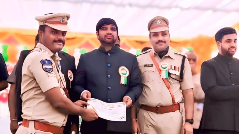 Dandepally | దండేపల్లి, ఆంధ్రప్రభ : 77వ గణతంత్ర దినోత్సవ వేడుకలను పురస్కరించుకుని పోలీస్ శాఖలో విశేష సేవలందించిన దండేపల్లి సబ్ ఇన్స్పెక్టర్ (ఎస్సై) ఎండి తహసినోద్దీన్ కు ప్రభుత్వ ప్రశంస పత్రం పురస్కారంతో గౌరవం దక్కించుకున్నారు. ఈ రోజు మంచిర్యాల జిల్లా కేంద్రంలో నిర్వహించిన గణతంత్ర దినోత్సవ వేడుకల్లో భాగంగా జిల్లా కలెక్టర్ కుమార్ దీపక్ చేతుల మీదుగా ప్రశంస పత్రాన్ని అందుకున్నారు.