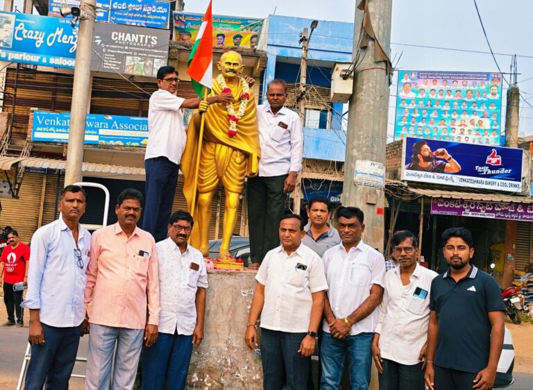 Death anniversary | గణపురం, ఆంధ్రప్రభ : మహాత్మా గాంధీ వర్ధంతిని ఈ రోజు మండలంలోని చెల్పూర్లో ఉప సర్పంచ్ పోనగంటి మలహాల్ రావు ఆధ్వర్యంలో ఘనంగా నిర్వహించారు. బస్టాండ్లోనీ గాంధీ విగ్రహానికి పూలమాల వేసి నివాళులర్పించారు. ఈ సందర్భంగా గాంధీజీ దేశానికి చేసిన సేవలను కొనియాడారు. ఈ కార్యక్రమంలో వార్డు సభ్యులు రూపిరెడ్డి, సులోచన రాజిరెడ్డి, అంజద్ పాషా, మాజీ సర్పంచ్ కొత్త పద్మ వెంకన్న, మాజీ ఎంపీటీసీ బైరగోని సరిత తిరుపతి గౌడ్, నాయకులు అయితు రమేష్, అడ్డురి శ్రీధర్ రావు, వేముల వంశీ, కారోబార్ పొన్నం రఘు తదితరులు పాల్గొన్నారు.