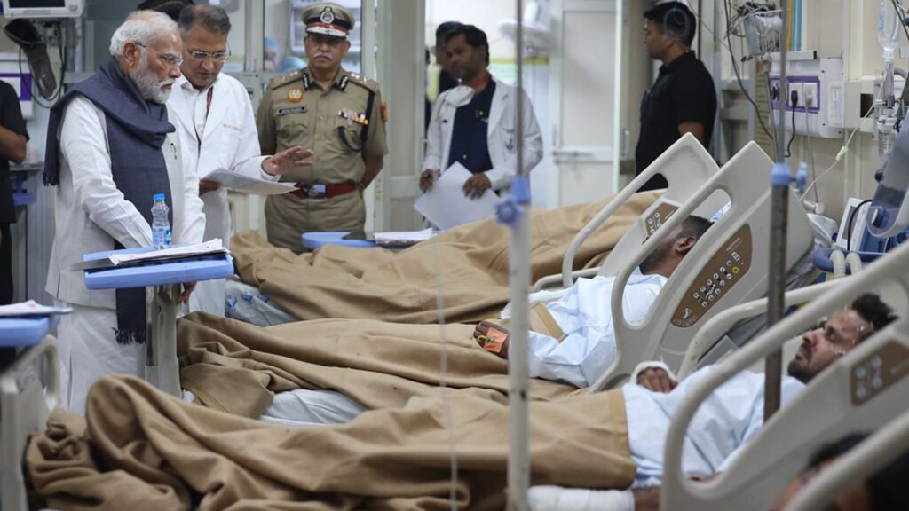 ఈ దుర్ఘటనలో ఇప్పటివరకు 12 మంది మృతి చెందగా, సుమారు 100 మంది ఆసుపత్రిలో చికిత్స పొందుతున్నారు. గాయపడిన వారికి అందిస్తున్న చికిత్సపై వైద్యులను మోదీ వివరంగా అడిగి తెలుసుకున్నారు. బాధితులను పరామర్శిస్తూ ధైర్యం చెప్పి, వారికి అవసరమైన సహాయం అందించేందుకు అధికారులను ఆదేశించారు.