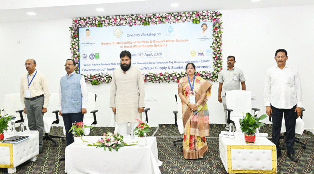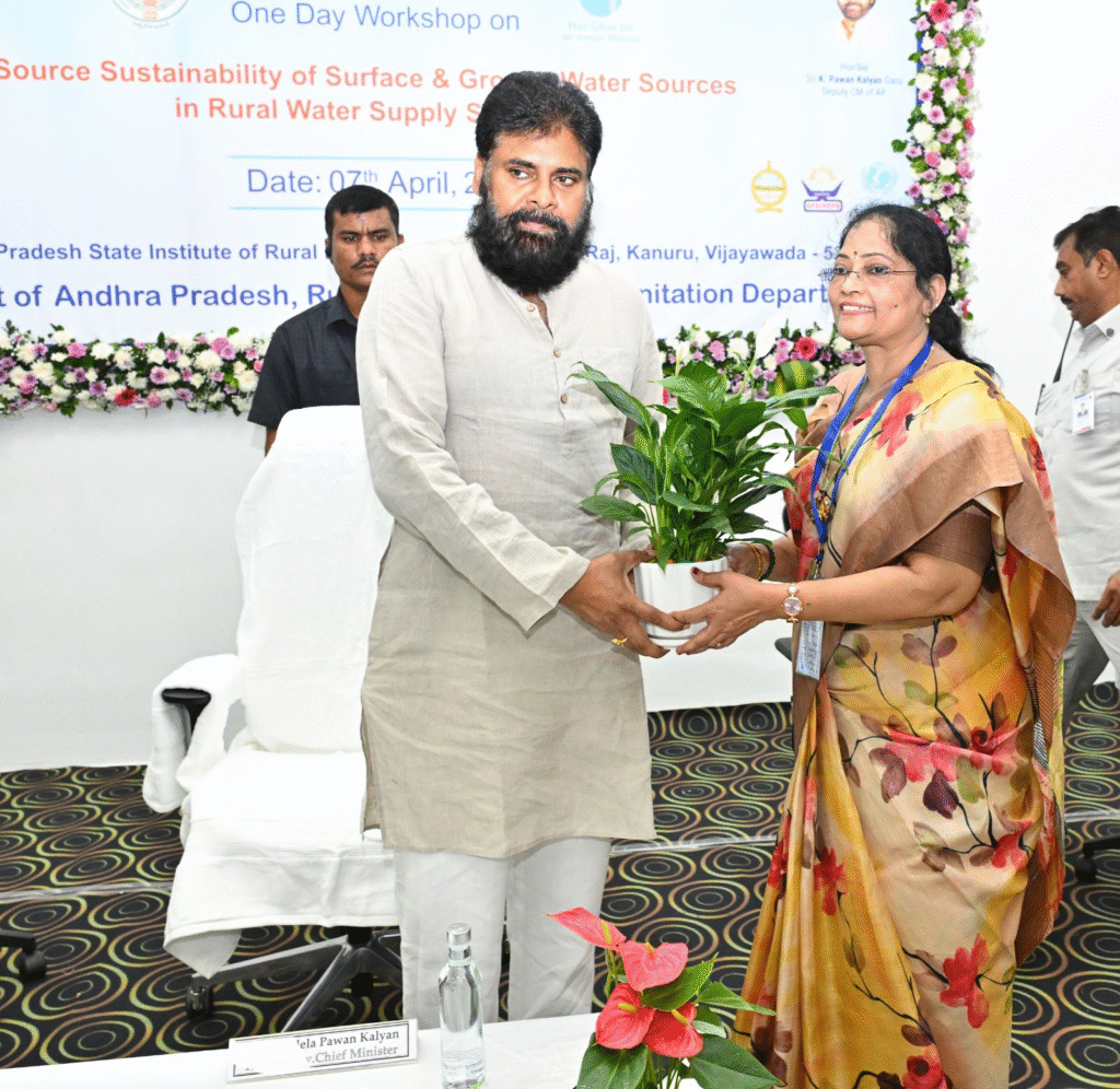 పంచాయతీ రాజ్, గ్రామీణాభివృద్ధి శాఖల పరిధిలో గ్రామీణ తాగునీటి సరఫరా వ్యవస్థలో జలవనరుల స్థిరత్వంపై ఒక రోజు వర్క్ షాపు కానూరులోని ఏపీఎస్ఐఆర్డీ భవన్ లో గురువారం ఉదయం మొదలైంది. ఈ కార్యక్రమాన్ని జ్యోతి ప్రజ్వలన చేసి పవన్ కళ్యాణ్ ప్రారంభించారు. అనంతరం పవన్ కళ్యాణ్ ప్రసంగిస్తూ “నీరు ఎక్కడుంటే అక్కడ అభివృద్ధి బాగుంటుంది. ప్రజల జీవన స్థితిగతులు మెరుగుపడతాయి. ఆంధ్రప్రదేశ్ ప్రజల జీవన విధానం మెరుగవడానికి గోదావరి, కృష్ణా, పెన్నా, వంశధార వంటి నదులే జీవనాధారం. వ్యవసాయ ఆధారిత రాష్ట్రంగా దేశంలో ముందు వరుసలో ఉండటానికి మనకు సమృద్ధిగా ఉన్న నీటి వనరులే కారణం. అలాంటి నీటిని సంరక్షించుకునే పెద్ద సవాల్ ఇప్పుడు మన ముందుంది.