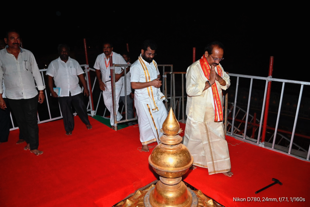 ఈ సందర్భంగా చైర్మన్ ఈ.ఓ. మాట్లాడుతూ.. భక్తుల సెంటిమెంట్ను దృష్టిలో ఉంచుకుని, మహా కుంభాభిషేక కార్యక్రమాన్ని అత్యంత వైభవంగా నిర్వహించేందుకు అన్ని శాఖల అధికారులు సమన్వయంతో పని చేయాలన్నారు. ముఖ్యంగా విమాన గోపురం వద్ద జరుగుతున్న పనుల్లో ఎక్కడా జాప్యం జరగకుండా చూడాలని, తుది మెరుగులు దిద్దే పనులను వేగవంతం చేయాలని ఇంజనీరింగ్ అధికారులకు సూచించారు. ప్రధాన ఆలయ శోభ ఉట్టిపడేలా, భక్తులకు కంటికి విందుగా ఉండేలా ఏర్పాట్లు ఉండాలని వారు స్పష్టం చేశారు. ఈ కార్యక్రమంలో ఆలయ సిబ్బంది ఇతర అధికారులు పాల్గొన్నారు.