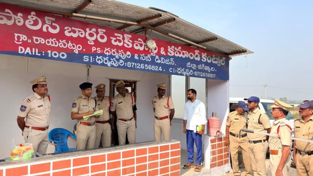 Dharmapuri | ధర్మపురి, ఆంధ్రప్రభ : సర్పంచ్ ఎన్నికల నేపథ్యంలో జగిత్యాల జిల్లాలో పోలీస్ శాఖ తనిఖీలు, భద్రతా చర్యలను కట్టుదిట్టం చేయడం జరిగిందని జిల్లా ఎస్పీ అశోక్ కుమార్ తెలిపారు. శనివారం ధర్మపురి పోలీస్ స్టేషన్ పరిధిలోని రాయపట్నం జిల్లా బార్డర్ చెక్ పోస్ట్ ను పరిశీలించారు.