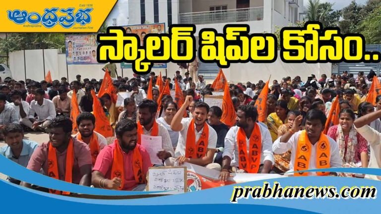 నారాయణపేట ప్రతినిధి, అక్టోబర్ 27 (ఆంధ్రప్రభ ) : రాష్ట్ర ప్రభుత్వం విద్యార్థులకు రావాల్సిన ఫీజు రీయింబర్స్మెంట్, స్కాలర్షిప్లు వెంటనే విడుదల చేయాలని కోరుతూ అఖిల భారత విద్యార్థి పరిషత్ (ఏబీవీపీ) (ABVP) ఆధ్వర్యంలో సోమవారం జిల్లా కేంద్రంలోని ఎమ్మెల్యే క్యాంపు కార్యాలయం ముందు ధర్నా నిర్వహించారు.