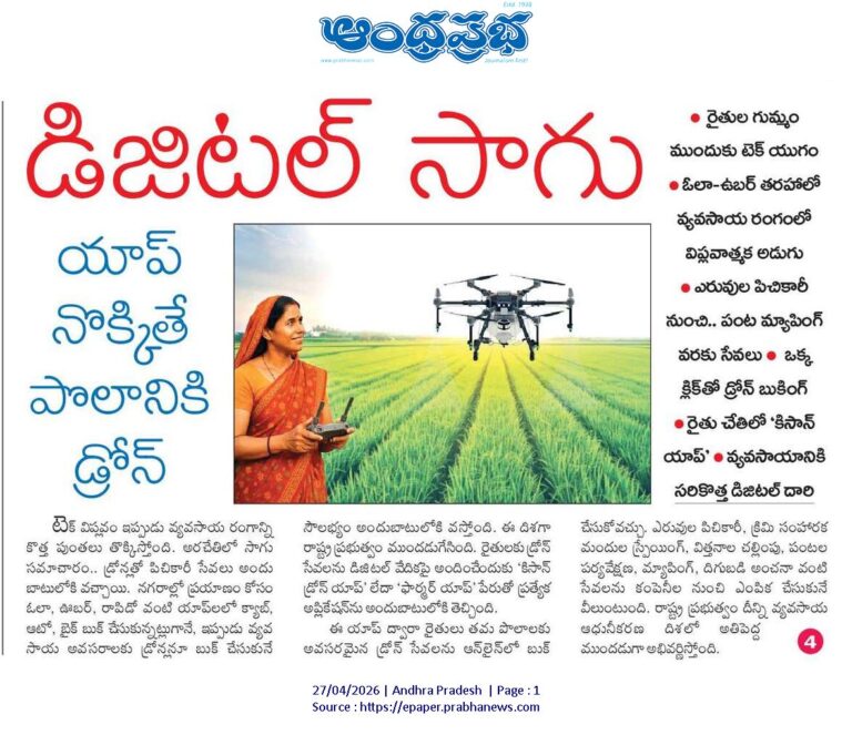 నగరాల్లో ప్రయాణం కోసం ఓలా, ఊబర్, రాపిడో వంటి యాప్లలో క్యాబ్, ఆటో, బైక్ బుక్ చేసుకోవడం ఇప్పుడు సాధారణం. అదే విధానాన్ని వ్యవసాయ రంగానికి విస్తరించేందుకు రాష్ట్ర ప్రభుత్వం కొత్త అడుగు వేసింది. రైతులకు డ్రోన్ సేవలను డిజిటల్ వేదికపై అందించేందుకు ‘కిసాన్ డ్రోన్ యాప్’ లేదా ‘ఫార్మర్ యాప్’ పేరుతో ప్రత్యేక అప్లికేషన్ను అందుబాటులోకి తెచ్చింది.