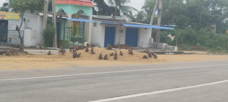 Disasters, పెడన, ఆంధ్రప్రభ : పెడన మండలం బల్లిపర్రు గ్రామంలో వర్షానికి తడిచి మొలకెత్తిన ధాన్యాన్ని ఆరబోయగా, గుంపుగా వచ్చిన కోతులు వాటిని చుట్టుముట్టాయి. ‘రాజుల సొమ్ము రాళ్లపాలు’ అన్న చందంగా రైతుల ధాన్యం కోతుల పాలైంది. కోతులను బెదరగొట్టడానికి ప్రయత్నిస్తే మీద పడతాయన్న భయంతో అటుగా వెళ్లేవారు వాటిని ఆపేందుకు సాహసించలేకపోతున్నారు. విపత్తుల నష్టానికి తోడు, కోతులు కూడా రైతుకు నష్టం కలిగిస్తున్నాయి అన్నారు.