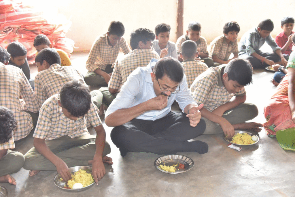 గంట్యాడ(విజయనగరం), ఆంధ్ర ప్రభ : గురువుగా అవతారమెత్తిన జిల్లా కలెక్టర్ ఎస్.రాంసుందర్ రెడ్డి.. అంతలోనే విద్యార్థుల్లో ఒకరిగా మారిపోయారు. జిల్లాలోని గంట్యాడ జిల్లా పరిషత్ ఉన్నత పాఠశాలను శుక్రవారం ఆకస్మికంగా సందర్శించిన కలెక్టర్ తొలుత విద్యార్థులకు క్లాస్ తీసుకున్నారు. ఆ పైన మధ్యాహ్న భోజన పథకం పరిశీలనలో భాగంగా విద్యార్థులకు వడ్డన చేసి, అదే విద్యార్థుల వరుసలో నిల్చుని కంచం పట్టి భోజనం వేయించుకున్నారు. భోజనం తింటూనే విద్యార్థులతో మాట్లాడి ప్రతిరోజూ వంటకాలు, మెనూ స్థితి గతులను అడిగి తెలుసుకున్నారు. తమతో పాటు జిల్లా సర్వోన్నతాధికారి కలిసి భోంచేయడం పట్ల విద్యార్థులు ఎంతగానో ఆనందించారు.