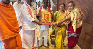 వీరికి ఆలయ అధికారులు అమ్మవారి దర్శనం ఏర్పాట్లు చేయగా వేద ఆశీర్వచనం అనంతరం ప్రధానాలయ సూపర్డెంట్ సత్యనారాయణ అమ్మవారి చిత్రపటం రసీదు అందజేశారు, ఈ కార్యక్రమంలో ఇన్స్పెక్టర్ జగన్ తో పాటు ఇతర అధికారులు ఉన్నారు.