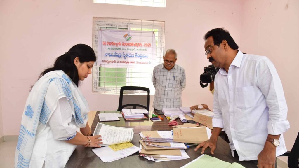 Collector | తిమ్మాపూర్, ఆంధ్రప్రభ : ఎన్నికల కమిషన్ నిబంధనలు పాటిస్తూ నామినేషన్ల (Nomination) ప్రక్రియ పకడ్బందీగా చేపట్టాలని, విధుల్లో అధికారులు అప్రమత్తంగా ఉండాలని జిల్లా కలెక్టర్ పమేలా సత్పతి సూచించారు. తిమ్మాపూర్ మండలం నుస్తులాపూర్ గ్రామపంచాయతీ కార్యాలయంలో నుస్తులాపూర్, రామకృష్ణ కాలనీ, ఇందిరానగర్ పంచాయతీ ఎన్నికలకు సంబంధించిన నామినేషన్ ప్రక్రియను, కొత్తపల్లి గ్రామపంచాయతీలో కొత్తపల్లి, రేణిగుంట పంచాయతీ ఎన్నికలకు సంబంధించిన నామినేషన్ల ప్రక్రియను కలెక్టర్ పరిశీలించారు. నామినేషన్ పత్రాలను, రిజిస్టర్లను తనిఖీ చేశారు.