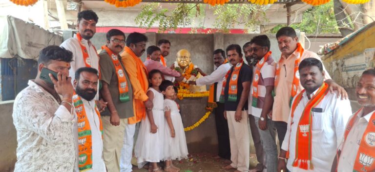చిట్యాల, ఆంధ్రప్రభ ; బడుగు బలహీన వర్గాల అభివృద్ధి కొరకు నిరంతనం పాటుపడిన గొప్ప మహోన్నతమైన వ్యక్తి డాక్టర్ బి.ఆర్ అంబేద్కర్ అని బిజెపి పట్టణ అధ్యక్షుడు గుండాల నరేష్ ప్రధాన కార్యదర్శి సుంచు శ్రీను తెలిపారు. చిట్యాల పట్టణ కేంద్రంలో కనకదుర్గ సెంటర్లో బిజెపి పట్టణ అధ్యక్షులు గుండాల నరేష్ గౌడ్ ఆధ్వర్యంలో భారత రాజ్యాంగ నిర్మాత న్యాయ కోవిదులు ఆర్థికవేత సామాజిక సంఘ నాయకులు బడుగు బలహీన వర్గాల ఆశాజ్యోతి డాక్టర్ బి.ఆర్ అంబేద్కర్ గారి 135 జయంతి వేడుకలు సందర్భంగా అంబేద్కర్ విగ్రహానికి పూలమాలలు వేసి ఘనంగా నివాళులర్పించడం జరిగింది. ఈ కార్యక్రమంలో బిజెపి పట్టణ ప్రధాన కార్యదర్శి సుంచు శ్రీను, ఎస్సీ మోర్చా రాష్ట్ర కార్యవర్గ సభ్యులు మాస శ్రీనివాస్ జిల్లా కౌన్సిల్ మెంబర్ కూరేళ్ల శ్రీనివాస్ బిజెపి సీనియర్ నాయకులు చికలం మెట్ల అశోక్ కన్నబోయిన మహలింగం యాదవ్ బోడిగే అశోక్ బిజెపి పట్టణ మాజీ ప్రధాన కార్యదర్శిలు జయారపు రామకృష్ణ గంజి గోవర్ధన్ బిజెపి సీనియర్ నాయకులు కుక్కల నాగరాజు పట్టణ నాయకులు తీగల శివ,చిలువేరు నాగరాజు,దొడ్డు శ్రీకాంత్ తదితరులు పాల్గొన్నారు.