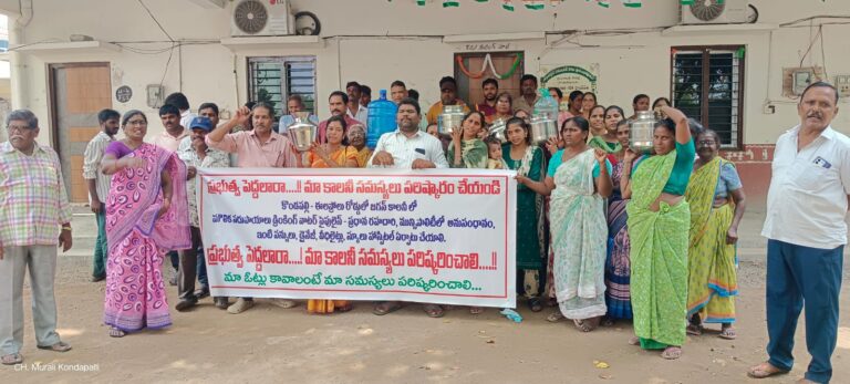 పట్టణంలో విచ్చలవిడిగా వైన్ షాపులు, బార్లు ఏర్పాటు చేసి మద్యం ఏరులై పారిస్తున్న ప్రభుత్వం జగనన్న కాలనీకి గుక్కెడు తాగునీరు సరఫరా చేయలేకపోతుందని విమర్శించారు. జగనన్న కాలనీని మున్సిపాలిటీలో అనుసంధానం చేయకుండా, కాలనీలో మౌలిక సదుపాయాలు కల్పించకుండా అధికారులు తాత్సారం చేస్తున్నారని ఆరోపించారు. ‘మా ఓట్లు కావాలంటే… మా కాలనీ సమస్యలు పరిష్కరించాలి’ అని డిమాండ్ చేశారు. కార్యక్రమానికి సీపీఎం పట్టణ కార్యదర్శి ఎం.మహేష్ నాయకత్వం వహించారు. జగనన్న కాలనీకి చెందిన బాలాజీ, దేవి, మహిళలు పాల్గొన్నారు.