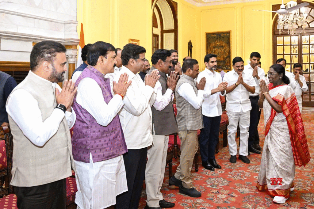 Droupadi Murmu | ఆంధ్రప్రభ వెబ్ డెస్క్ : అమరావతి బిల్లుకు ఆమోదం తెలిపిన నేపథ్యంలో రాష్ట్రపతి ద్రౌపది ముర్ము ను మంత్రి నారా లోకేష్ కలిసి కృతజ్ఞతలు తెలిపారు. ఎంపీలతో కలిసి రాష్ట్రపతిని మర్యాదపూర్వకంగా కలిసిన లోకేష్, రాష్ట్రపతి నిర్ణయానికి ధన్యవాదాలు తెలియజేశారు.