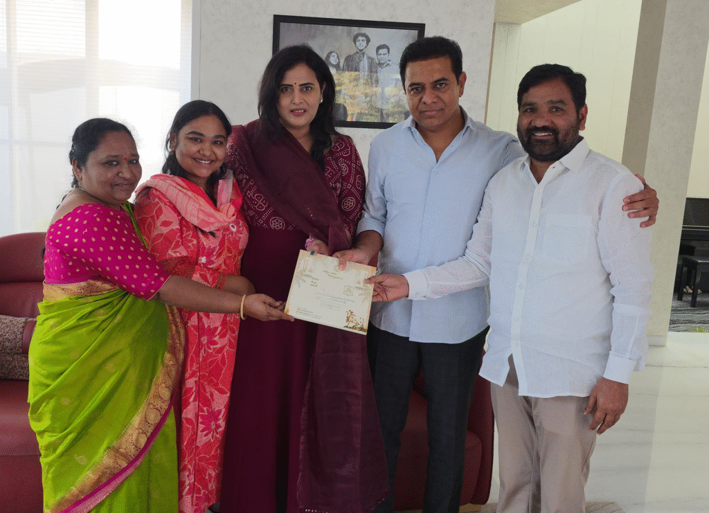 తన కుమార్తె వివాహం ఏప్రిల్ 12వ తేదీన నిశ్చయమైనట్లు తెలియజేస్తూ, పెళ్లి పత్రికను అందజేసి వారిని సాదరంగా ఆహ్వానించారు. ఈ సందర్భంగా దుర్గం చిన్నయ్య తన కుటుంబ సభ్యులతో కలిసి కేసీఆర్, కేటీఆర్ ఆశీర్వాదం తీసుకున్నారు. వివాహ వేడుకకు హాజరై వధూవరులను ఆశీర్వదించాలని ఆయన కోరగా, కేసీఆర్ దంపతులు, కేటీఆర్ శుభాకాంక్షలు తెలియజేశారు. ఈ కార్యక్రమంలో మాజీ ఎమ్మెల్యే కుటుంబ సభ్యులు పాల్గొన్నారు.