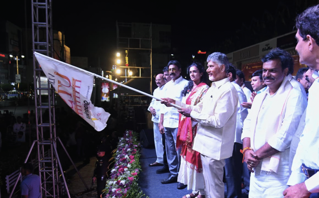 (ఆంధ్రప్రభ, ఎన్టీఆర్ బ్యూరో) : విజయవాడ (Vijayawada) బందర్ రోడ్ (Bunder Road) గురువారం రాత్రి కళల సముద్రంలా మారింది. దసరా కార్నివాల్ వాక్ (Dussehra Carnival Walk) అంగరంగ వైభవంగా ప్రారంభమై నగర గౌరవాన్ని మరోసారి ప్రపంచ పటంలో నిలిపింది. ముఖ్యమంత్రి నారా చంద్రబాబు నాయుడు (Chief Minister Nara Chandrababu Naidu) ముఖ్య అతిథిగా హాజరై ప్రారంభించి, ఈ మహోత్సవాన్ని భవిష్యత్తులో కొనసాగించేలా నాంది పలికారు.