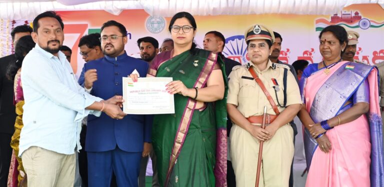 EGS | ఫీల్డ్ అసిస్టెంట్కు ఉత్తమ అవార్డు కడెం ( నిర్మల్ జిల్లా), ఆంధ్రప్రభ : కడెం మండలంలోని ఉడుంపూర్ ఈజీఎస్ ఫీల్డ్ అసిస్టెంట్ గా పనిచేస్తున్న నాగవత్ రవీందర్ జిల్లా ఉత్తమ సేవలు అందించినందుకు గణతంత్ర దినోత్సవం సందర్భంగా ఈ రోజు నిర్మల్ జిల్లా కలెక్టర్ అభిలాష అభినవ్ చేతుల మీదుగా ప్రశంస పత్రాన్ని అందుకున్నారు. ఈ కార్యక్రమంలో జిల్లా అదనపు కలెక్టర్ ఫైజాన్ అహ్మద్ జిల్లా ఎస్పీ డాక్టర్ జానకి షర్మిల నిర్మల్ డిఆర్ డిఓ విజయలక్ష్మి నిర్మల్ ఆర్డిఓ రత్న కళ్యాణి తదితరులు పాల్గొన్నారు.