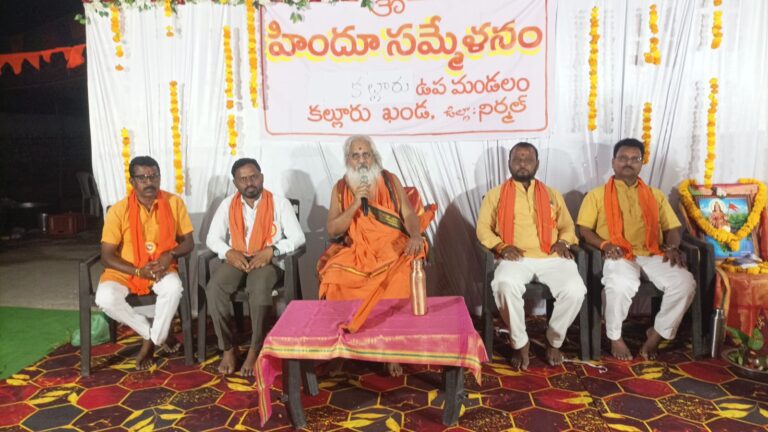 కుంటాల, ఆంధ్రప్రభ ; ప్రతి ఒక్కరూ సనాతన ధర్మం వైపు అడుగులు వేయాలని శ్రీశ్రీశ్రీ కమలానంద భారతి స్వామీజీ అన్నారు కుంటాల మండలంలోని కల్లూరు శ్రీనివాస కన్వెన్షన్ హాల్ ఆయన పలు ప్రవచనాలు ఇచ్చారు. ఈ సందర్భంగా సనాతన ధర్మంపై ప్రతి ఒక్కరు అడుగులు వేయాలని సనాత ధర్మం పాటించాలని తెలియజేశారు. హిందూ సాంప్రదాయాల వివరాలను భక్తులకు తెలియజేశారు.