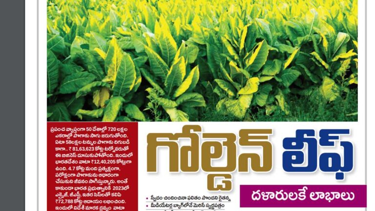 ప్రపంచ వ్యాప్తంగా 50 దేశాల్లో 720 లక్షల ఎకరాల్లో పొగాకు సాగు జరుగుతోంది. ఏటా 58లక్షల టన్నుల పొగాకు దిగుబడి కాగా.. ₹ 81,63,623 కోట్ల టర్నోవరుతో ఈ బిజినెస్ దూసుకుపోతోంది. ఇందులో భారతదేశం వాటా ₹12,40,205 కోట్లుగా ఉంది. 4.7 కోట్ల మంది ప్రత్యక్షంగా, పరోక్షంగా పొగాకును ఆధారంగా చేసుకుని జీవనం సాగిస్తున్నారు. అంతేకాకుండా భారత ప్రభుత్వానికి 2023లో ఎక్సైజ్, జీఎస్టీ, ఇతర సెస్లతో కలిపి ₹72,788 కోట్ల ఆదాయం లభించింది. ఇందులో విదేశీ మారక ద్రవ్యం వాటా ₹12,605 కోట్లు. ఇన్ని వేల కోట్ల సంపదను సృష్టిస్తోంది రైతన్నలే. ఇంతగా లాభాలు ఆర్జించి పెడుతున్న రైతన్నలకు వార్షిక ఆదాయం ఉపాధి హామీ కూలీ రోజువారీ వేతనం కంటే చాలా తక్కువ. ఇదీ గోల్డెన్ లీఫ్ రైతన్న ల పొగసూరిన బతుకు.
