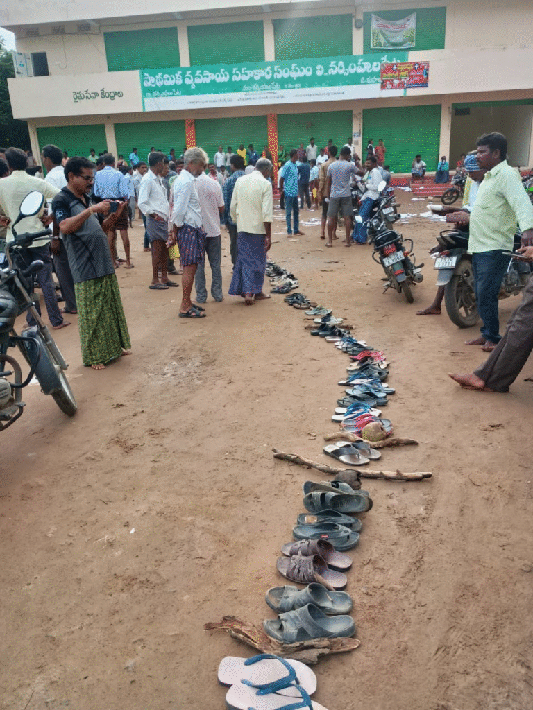 నర్సింహులపేట, ఆంధ్రప్రభ : నర్సింహులపేట (Narsimhulapet) మండలంలో వారం రోజులుగా యూరియా కొరతతో రైతులు తీవ్ర ఇబ్బందులు పడుతున్నారు. ఈరోజు నర్సింహులపేట ప్రాథమిక వ్యవసాయ సహకార సంఘం (Agricultural Co-operative Society) వద్ద తెల్లవారుజాము నుండే రైతులు నిలబడలేక చెప్పులను వరుసలో ఉంచారు. పీఏసీఎస్ (PACS) కు 900 బస్తాల యూరియా రావడంతో రైతులు ఒక్కసారిగా ఎగబడ్డారు. పాత టోకెన్లకు యూరియా (Urea) పంపిణీ చేస్తూ.. కొత్తవారికి టోకెన్లను ఇస్తున్నారు.