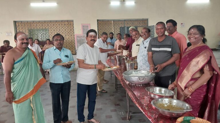 Food donation | కరీమాబాద్, ఆంధ్రప్రభ : ఎన్నారై ఆధ్వర్యంలోమాఘ పౌర్ణమి శ్రీ లలిత దేవి మాత అమ్మవారి జయంతి పురస్కరించుకొని మహా అన్నదాన కార్యక్రమం నిర్వహించారు. ఆదివారం 34 డివిజన్ శివనగర్ శ్రీ శివ భక్త మార్కండేయ దేవాలయంలో మాఘ పౌర్ణమి పురస్కరించుకొని ఆలయ పూజారులు, అభిషేక్ శర్మ, కృష్ణ శర్మ పూజలునిర్వహించారు. అనంతరం వడ్నాల సదానందం పద్మ దంపతుల కూతురు ఎన్నారై వాస్తవ్యులు వరద వెంకటముని శ్యామ్ దంపతుల ఆధ్వర్యంలో మహా అన్నప్రసాద వితరణ నిర్వహించారు. కార్యక్రమంలో పాశికంటి రాజేశ్వరరావు, చామంతుల బిక్షపతి, వడ్నాల నరేందర్, పిట్ట భాస్కర్, తౌటం మధు, బైరి శ్యాం, బైరి వేణు, రాపెళ్లి చంద్రమౌళి, దాసి సురేందర్, చిదురాల రాజేందర్, కోటి, కస్తూరి శ్రీనివాస్, తదితరులు పాల్గొన్నారు.
