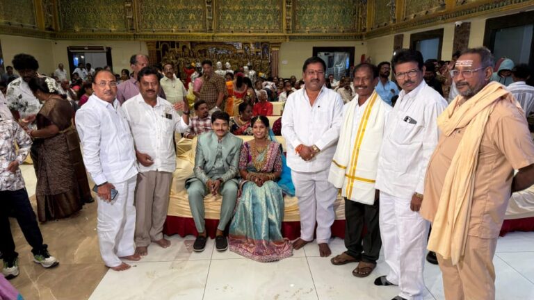 అశ్వారావుపేట, ఆంధ్రప్రభ: నియోజకవర్గ కేంద్రంలో శ్రీశ్రీ ఫంక్షన్ హాల్ నందు కారుకొండ రామకృష్ణ – జయలక్ష్మి దంపతుల కుమార్తె పూజిత – రఘురాం వివాహ వేడుకలో మాజీ ఎమ్మెల్యే, టిఆర్ఎస్ రాష్ట్ర నాయకులు తాటి వెంకటేశ్వర్లు పాల్గొన్నారు. నూతన వధూవరులను ఆశీర్వదించి శుభాకాంక్షలు తెలిపారు. ఈ కార్యక్రమంలో మాజీ జెడ్పిటిసి అంకిత మల్లికార్జున రావు, సీపీఎం జిల్లా నాయకులు కొక్కెరపాటి పుల్లయ్య, మాజీ ఎంపీపీ జల్లిపల్లి శ్రీరామ్ మూర్తి తదితరులు పాల్గొన్నారు.