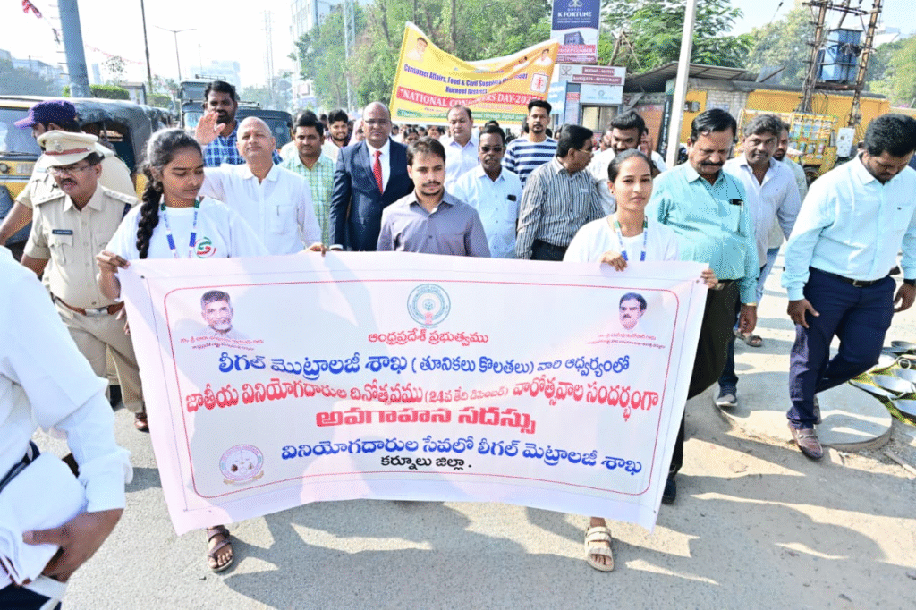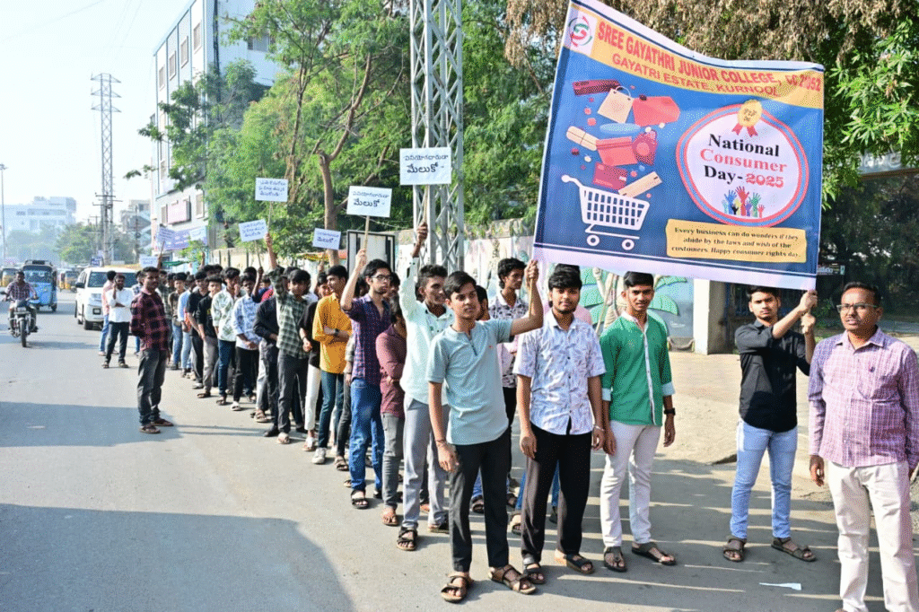 Gayathri Estate | కర్నూలు బ్యూరో, ఆంధ్రప్రభ : వినియోగదారులు తమ హక్కులు, బాధ్యతలపై అవగాహన కలిగి ఉండాలని జాయింట్ కలెక్టర్ నూరుల్ ఖమర్ తెలిపారు. ఈ రోజు జాతీయ వినియోగదారుల దినోత్సవం సందర్భంగా వారం రోజుల పాటు నిర్వహించనున్న వేడుకలలో భాగంగా గాయత్రి ఎస్టేట్(Gayathri Estate)లో ఉన్న గాయత్రి జూనియర్ కళాశాల నుంచి కలెక్టరేట్ వరకు నిర్వహించిన వినియోగదారుల అవగాహన ర్యాలీని జాయింట్ కలెక్టర్ జెండా ఊపి ప్రారంభించారు.