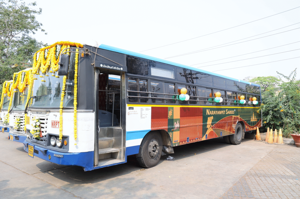 తెలంగాణ హస్తకళలతో బస్సులపై అలంకరణ