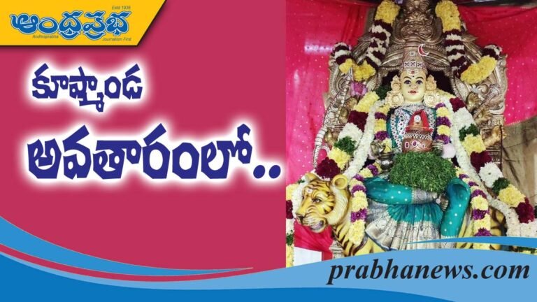 బాసర, ఆంధ్ర ప్రభ : ప్రసిద్ధ పుణ్యక్షేత్రం, చదువుల తల్లి కొలువుదీరిన బాసర (Basara) శ్రీ జ్ఞాన సరస్వతి దేవి సన్నిధిలో శరదియా నవరాత్రి ఉత్సవాలు వైభవంగా కొనసాగుతున్నాయి. నాల్గవ రోజు గురువారం అమ్మవారు కూష్మాండ (Kushmanda) అవతారం లో భక్తులకు దర్శనం ఇచ్చారు. నవరాత్రుల(Navaratri)లో అమ్మవారి నాలుగవ స్వరూప నామం కూష్మాండ. ‘కు’ అంటే చిన్న, ‘ఊష్మ’ అంటే శక్తి, ‘అండా’ అంటే విశ్వం.. తన శక్తితో ఈ విశ్వాన్ని సృష్టించింది అని అర్ధం. ఎనిమిది భుజాలు కలిగి విరాజిల్లుతుంది.