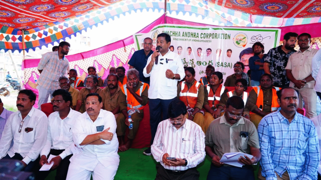 ఈ సందర్భంగా ఏర్పాటు చేసిన సభలో మంత్రి పాల్గొని మాట్లాడుతూ, పట్టణాలు, పల్లె సీమలు స్వచ్ఛంగా ఉంచే లక్ష్యంతో ప్రతి నెల మూడవ శనివారం నెలకొక థీమ్ తో స్వర్ణ ఆంధ్ర- స్వచ్ఛ ఆంధ్ర కార్యక్రమాన్ని రాష్ట్ర ప్రభుత్వం నిర్వహిస్తోందని పేర్కొన్నారు. అన్ని వర్గాల ప్రజలు తమ ఇంటిని, వార్డును, గ్రామాన్ని పరిశుభ్రంగా, స్వచ్ఛంగా ఉంచుకోవాలని సూచించారు. పెద్ద నగరాల్లో చెత్త నుంచి విద్యుత్ ను ఉత్పత్తి చేయడం, వాడిన నీటిని రీసైక్లింగ్ చేసి పరిశ్రమలకు వినియోగించడం వంటి కార్యక్రమాలను రాష్ట్ర ప్రభుత్వం ప్రోత్సహిస్తున్నట్లు మంత్రి తెలిపారు.