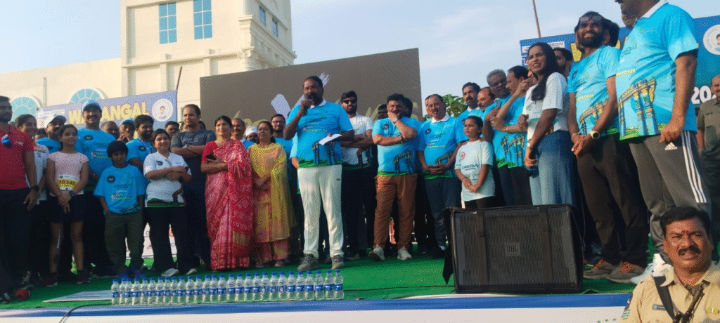 SPORTS | ఆంధ్రప్రభ సిటీబ్యూరో, వరంగల్ : హనుమకొండలో వరంగల్ ట్రై సిటీ ఆధ్వర్యంలో నిర్వహించిన హాఫ్ మారథాన్ పోటీల ప్రారంభోత్సవంలో రాష్ట్ర పశుసంవర్ధక, మత్స్య, పాడి పరిశ్రమ, యువజన, క్రీడల శాఖ మంత్రి వాకిటి శ్రీహరి, పాల్గొన్న రాష్ట్ర స్పోర్ట్స్ అథారిటీ ఛైర్మన్ శివసేనా రెడ్డి, ఎమ్మెల్యేలు నాయిని రాజేందర్ రెడ్డి, రేవూరి ప్రకాష్ రెడ్డి, కెఆర్ నాగరాజు, మేయర్ గుండు సుధారాణి, కుడా ఛైర్మన్ ఇనగాల వెంకట్రామ్ రెడ్డి, వరంగల్ పోలీస్ కమిషనర్ సన్ ప్రీత్ సింగ్, తదితరులు.