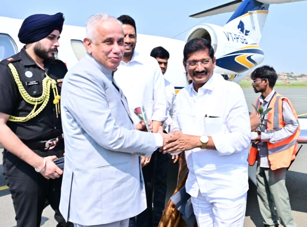కర్నూలు బ్యూరో, ఆంధ్రప్రభ : ఆంధ్రప్రదేశ్ రాష్ట్ర గవర్నర్ ఎస్.అబ్దుల్ నజీర్ (Andhra Pradesh State Governor S. Abdul Nazeer)కు కర్నూలు జిల్లా ఎస్పీ విక్రాంత్ పాటిల్ ఆత్మీయ స్వాగతం పలికారు. రాయలసీమ యూనివర్సిటీ (Rayalaseema University) నాలుగో స్నాతకోత్సవం, కర్నూలు మాంటెస్సోరి పాఠశాల స్వర్ణోత్సవ వేడుకల్లో పాల్గొనేందుకు గవర్నర్ బుధవారం ఓర్వకల్లు విమానాశ్రయానికి విచ్చేశారు. ఈ సందర్భంగా జిల్లా ఎస్పీ విక్రాంత్ పాటిల్ గవర్నర్ను మర్యాదపూర్వకంగా కలిసి పూల మొక్కను అందజేశారు. గవర్నర్కు జిల్లా అధికారుల బృందం, విశ్వవిద్యాలయ ప్రతినిధులు స్వాగతం పలికారు. రాష్ట్ర గవర్నర్ పర్యటన నేపథ్యంలో పోలీసులు కట్టుదిట్టమైన భద్రతా ఏర్పాట్లు చేశారు.