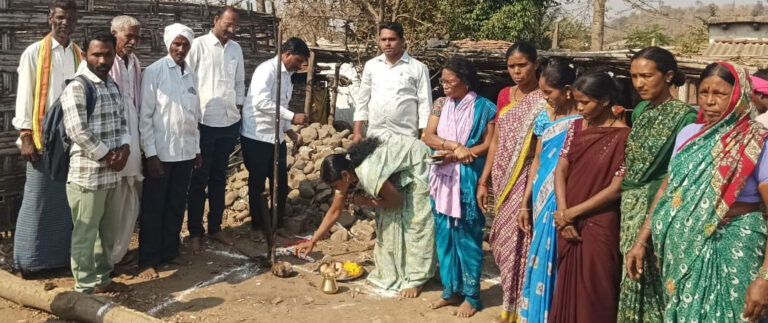సిర్పూర్ (యు), ఆంధ్రప్రభ ; కొమురం భీం అసిఫాబాద్ జిల్లా సిర్పూర్ (యు) మండలంలోని పంగిడి పంచాయతీ కేంద్రంలో పదిలక్షలతో నిర్మించే గ్రామైక్య సంఘ భవన నిర్మాణానికి శనివారం పంగిడి సర్పంచ్ ఆత్రం మీరా జాలీ0షా భూమి పూజ చేశారు. ఈ సందర్భంగా సర్పంచ్ మాట్లాడుతూ.. మహిళా సంఘాల అభివృద్ధికి కోసం ప్రభుత్వం కృషి చేస్తోందని అన్నారు.ఇందిరా క్రాంతి పథకం స్వయం సహాయక సంఘాల మహిళలకు సమావేశం నిర్వహించడానికి ఈ సమైక్య భవనం ఎంతో ఉపయోగ పడుతుందని అన్నారు. మహిళలను ఆర్థికంగా ఎదగడానికి ప్రజా పాలన ప్రభుత్వం ఎంతో కృషి చేస్తుందని సర్పంచ్ ఆత్రం మీరా జాలీ0షా అన్నారు. భవన నిర్మాణ పనులు నాణ్యత పాటించాలని భవన పనులు త్వరగా పూర్తీ అయ్యేలా చూడాలని సర్పంచ్ కోరారు.ఈ కార్యక్రమంలో కాంగ్రెస్ పార్టీ మండల అధ్యక్షులు ఆత్రం శంకర్, గ్రామపంచాయతీ కార్యదర్శి షారుక్, పంచాయతీరాజ్ వర్క్ ఇన్స్పెక్టర్ బాబూలాల్, మహిళా సంఘం నాయకురాలు లక్ష్మీబాయి, మహిళా సంఘం సభ్యులు,గ్రామస్తులు పాల్గొన్నారు.