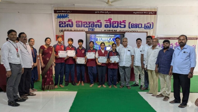 విద్యార్థులలో శాస్త్రీయ ఆలోచనను పెంపొందించాలనే లక్ష్యంతో జన విజ్ఞాన వేదిక గత 30 సంవత్సరాలుగా విద్యాసంస్థలలో సైన్స్ పరమైన అనేక కార్యక్రమాలు నిర్వహిస్తుందని తెలియజేశారు.అనంతరం రాష్ట్ర జిల్లా స్థాయికి ఎంపికైన విద్యార్థులకు ప్రశంస పత్రాలు బహుమతులను అందజేశారు.