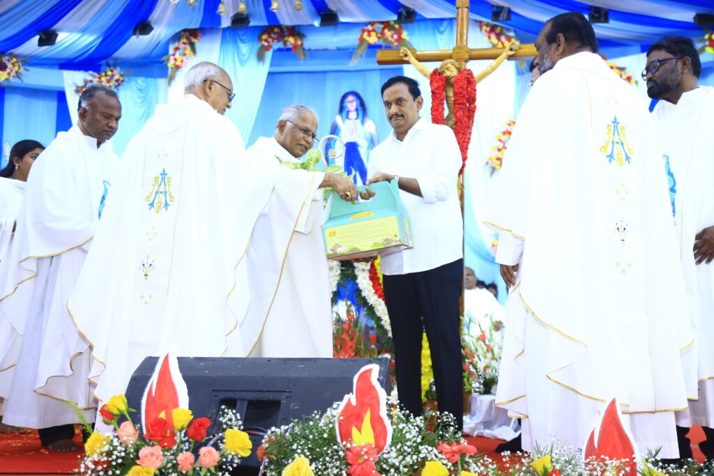 Gunadala Maryamata | విజయవాడ, ఆంధ్రప్రభ : తమిళనాడు వేళాంగిణి మేరీమాత ఉత్సవాల తరహాలో వచ్చే ఏడాది మరింత వైభవంగా, విజయవాడ నగర శోభ మరింత పెరిగే విధంగా గుణదల మేరీమాత ఉత్సవాలు నిర్వహించేందుకు ఎమ్మెల్యే గద్దె రామ్మోహన్ తో కలిసి కృషి చేస్తానని ఎంపీ కేశినేని శివనాథ్ తెలిపారు. దేశవిదేశాల్లో గుణదల మేరీమాత ఉత్సవాల గురించి చెప్పుకునే విధంగా మరిన్నీ వసతులు, సదుపాయాలు కల్పించి ఈ ప్రాంతాన్ని అభివృద్ది చేస్తామన్నారు. దక్షిణ భారత దేశంలోనే ప్రముఖ క్రైస్తవ పుణ్యక్షేత్రంగా వెలుగొందుతున్న గుణదల మేరీమాత ఉత్సవాల ముగింపు వేడుకలు బుధవారం జరిగాయి.