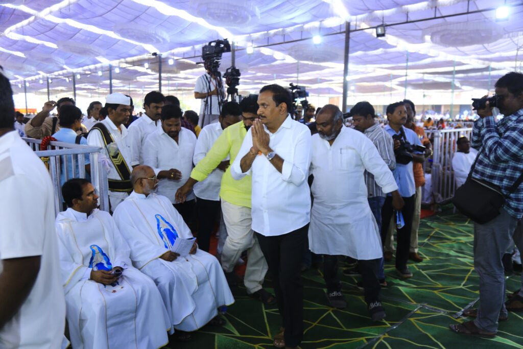 ఈ కార్యక్రమానికి ముఖ్యఅతిథులు గా ఎంపీ కేశినేని శివనాథ్, ఎమ్మెల్యే గద్దె రామ్మోహన్ హాజరయ్యారు. ఈ కార్యక్రమానికి విచ్చేసిన ఎంపీ కేశినేని శివనాథ్, ఎమ్మెల్యే గద్దె రామ్మోహన్ లను బిషప్ తెలగతోటి రాజారావు ఘనంగా సత్కరించారు. ఈ సందర్బంగా పాదర్ లకు ఎంపీ కేశినేని శివనాథ్ తృణ ధాన్యాలతో కూడిన బహుమతి అందజేశారు. అనంతరం బిషప్, పాదర్ లతో కలిసి మేరీమాత ఆశీస్సులతో రాష్ట్ర ప్రజలందరికీ మేలు జరగాలని ప్రార్థనలు నిర్వహించారు. ఈ సందర్భంగా ఎంపీ కేశినేని శివనాథ్ మాట్లాడుతూ ప్రతి ఏటా సంప్రదాయబద్ధంగా నిర్వహించే ఈ ఉత్సవాలలో పాల్గొని మేరీమాత ఆశీస్సులు తీసుకోవడం ఎంతో ఆనందంగా ఉందన్నారు.