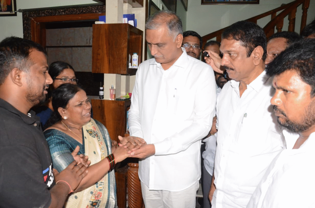 - చంద్రశేఖర్ కుటుంబాన్ని పరామర్శించిన హరీశ్రావు, సుధీర్రెడ్డి