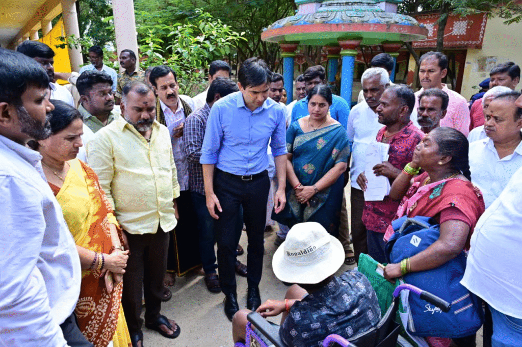 COLLECTOR| చిత్తూరు, ఆంధ్రప్రభ బ్యూరో : దివ్యాంగుల సంక్షేమానికి అధిక ప్రాధాన్యతను ప్రభుత్వం ఇస్తున్నదని జిల్లా కలెక్టర్ సుమిత్ కుమార్ పేర్కొన్నారు. శుక్రవారం ఐరాల మండలంలోని అగ్ర గ్రామం జడ్పీ హైస్కూల్ క్రీడా మైదానంలో సామాజిక న్యాయం సాధికారత మంత్రిత్వ శాఖ ఆధ్వర్యంలో దివ్యాంగులు, వృద్ధులు సహాయ పరికరాల గుర్తింపు కార్యక్రమానికిజిల్లా కలెక్టర్ సుమిత్ కుమార్ పూతలపట్టు నియోజకవర్గం ఎమ్మెల్యే మురళీమోహన్ పాల్గొన్నారు. ఈ సందర్భంగా కలెక్టర్ మాట్లాడుతూ.. 20 నుంచి 25 రకాల దివ్యాంగులకు, వృద్ధులకు చెవి సమస్య ఉంటే హీరింగ్ ఎయిడ్స్ ఇవ్వడం లేకపోతే ఒక డివైస్ ఇవ్వడం, ఒక వీల్ చైర్ ఇవ్వడం, ఒక స్టిక్ ఇవ్వడం కూడా జిల్లాలో చేయడం, జరుగుతూ ఉందని తెలిపారు.