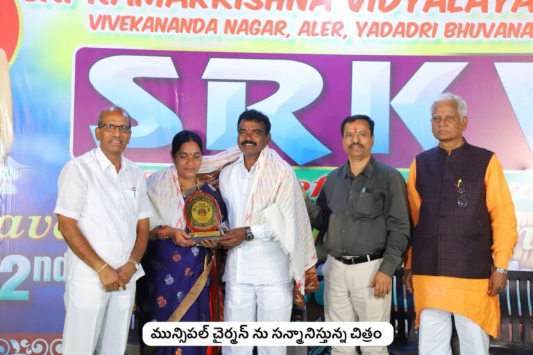 ఆలేరు, ఆంధ్రప్రభ : యాదాద్రి భువనగిరి జిల్లా ఆలేరు నూతన మున్సిపల్ చైర్మన్ గా ఎన్నికైన బీజన బాలమణి భాస్కర్ దంపతులను శ్రీ రామకృష్ణ విద్యాలయం 42వ వార్షికోత్సవం సందర్భంగా ఘనంగా సన్మానించారు. జిల్లా విద్యాశాఖ అధికారి కె సత్యనారాయణ, లింగం సుధాకర్ రెడ్డి, పాఠశాల ప్రధానాచార్యులు బండిరాజుల శంకర్, బండిరాజుల శంకర్, వైస్ ప్రిన్సిపాల్ తరిగొప్పుల రమేష్, ఆచార్యులు, తల్లిదండ్రులు పాల్గొని శుభాకాంక్షలు తెలిపారు.