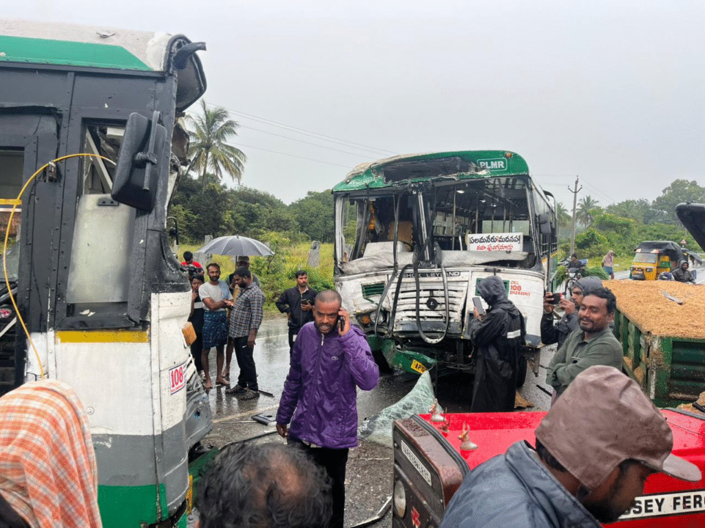 (పుంగనూరు, ఆంధ్రప్రభ) : చిత్తూరు జిల్లా (Chittoor District) పుంగనూరు పట్టణం గూడూరుపల్లిలో మంగళవారం ఉదయం రెండు ఆర్టీసీ బస్సులు ఇసుక ట్రాక్టర్ ఢీకొనగా 23 మంది తీవ్రంగా గాయపడ్డారు. ఆరుగురు పరిస్థితి విషమంగా ఉంది. గూడూరుపల్లి వద్ద ఉదయం 9 గంటల ప్రాంతంలో ఎదురు ఎదురుగా వస్తున్న రెండు ఆర్టీసీ బస్సులు, ఇసుక లోడ్ తో వెళుతున్న ఓ ట్రాక్టర్ ఢీకొన్నాయి. ఈ ప్రమాదంలో సుమారు 23 మంది ప్రయాణికులు గాయపడ్డారు.