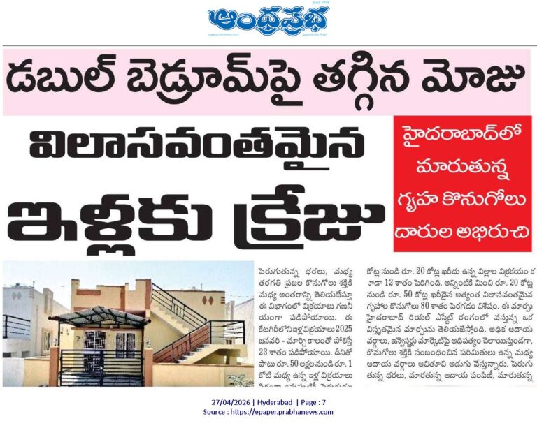 హైదరాబాద్, ఆంధ్రప్రభ బిజినెస్ బ్యూరో: ప్రజల అభిరుచుల్లో మార్పులు వస్తున్నాయి. తమ అభిరుచులకు అనుగుణంగా విలాసవంతమైన ఇళ్ల వైపు హైదరాబాద్ నగరవాసులు మొగ్గుచూపుతున్నారు. మరోవైపు పెరిగిన ధరలతో దిగువ మధ్యతరగతి వారి సొంత ఇంటి కల కలగానే మిగిలిపోతోంది. విలాసవంతమైన ఇళ్ల కొనుగోలుకు మాత్రం డిమాండ్ పెరుగుతోంది. హైదరాబాద్లోని గృహ మార్కెట్లో కొనుగోలుదారుల ప్రాధాన్యతల్లో స్పష్టమైన మార్పు కనిపిస్తోంది. చౌకైన ఇళ్లకు డిమాండ్ తగ్గుతుండగా, అధిక విలువ కలిగిన విలాసవంతమైన ఇళ్లకు డిమాండ్ పెరుగుతోంది.
