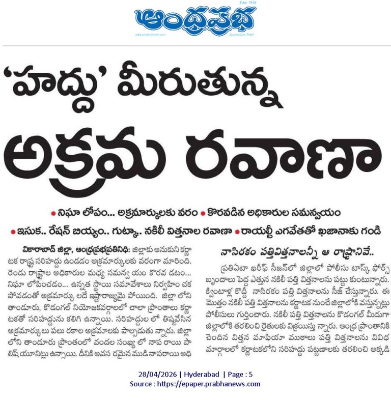 వికారాబాద్ జిల్లా, ఆంధ్రప్రభ ప్రతినిధి: జిల్లాకు ఆనుకుని కర్ణాటక రాష్ట్ర సరిహద్దు ఉండటం అక్రమార్కులకు వరంగా మారింది. రెండు రాష్ట్రాల అధికారుల మధ్య సమన్వయం కొరవడటం, నిఘా లోపించడం, ఉన్నత స్థాయి సమావేశాలు నిర్వహించకపోవడంతో అక్రమార్కులదే ఇష్టారాజ్యంగా మారింది. జిల్లాలోని తాండూరు, కొడంగల్ నియోజకవర్గాల పరిధిలోని అనేక ప్రాంతాలు కర్ణాటకతో సరిహద్దును కలిగి ఉన్నాయి. ఈ సరిహద్దుల్లో తిష్టవేసిన అక్రమార్కులు పలు రకాల అక్రమాలకు పాల్పడుతున్నారు.