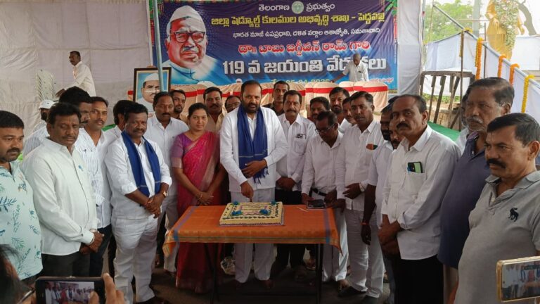 అనంతరం విప్, ఎమ్మెల్యే విజయ రమణారావు కేక్ కట్ చేసి సంబరాలు ప్రారంభించారు. ఈ సందర్భంగా ఆయన మాట్లాడుతూ.. జగ్జీవన్ రామ్ స్ఫూర్తితో ప్రతి ఒక్కరూ ముందుకు సాగాలని పిలుపునిచ్చారు. ఇలాంటి మహనీయులకు ఆదర్శంగా తీసుకుని వారి అడుగుజాడల్లో నడవాలని కోరారు. ఈ కార్యక్రమంలో పెద్దపల్లి మున్సిపల్ చైర్మన్ నూగిల్ల మల్లయ్య, కౌన్సిలర్లు, దళిత సంఘాల నాయకులు, ప్రభుత్వ అధికారులు, కాంగ్రెస్ నాయకులు, కార్యకర్తలు, తదితరులు పాల్గొన్నారు.